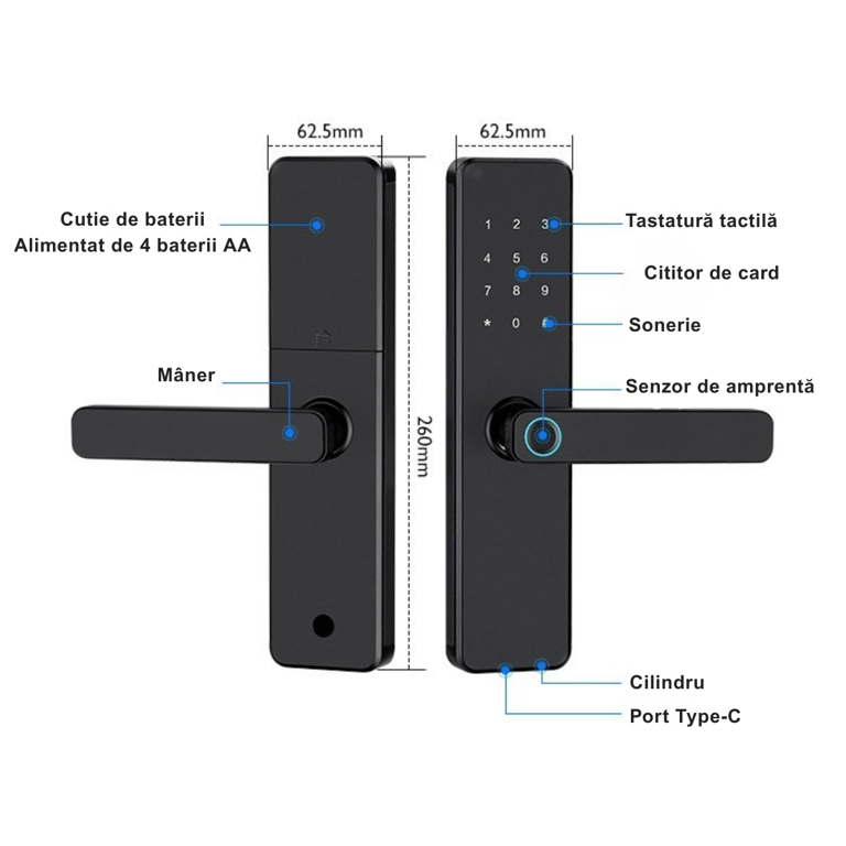 Metode de Deblocare Amprentă, PIN, RFID, App, Cheie
