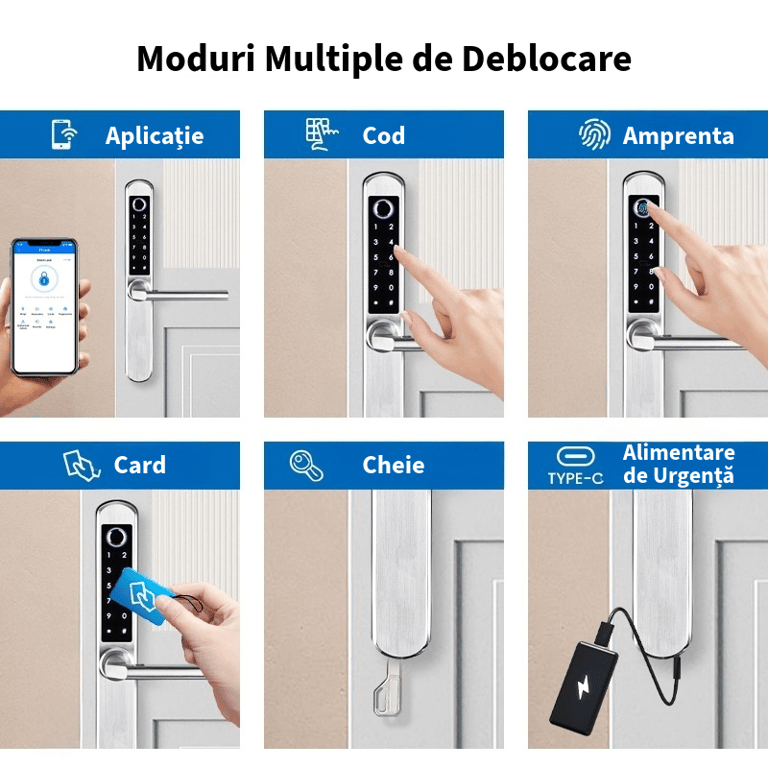 Metode de Deblocare Amprentă, PIN, RFID, App, Cheie